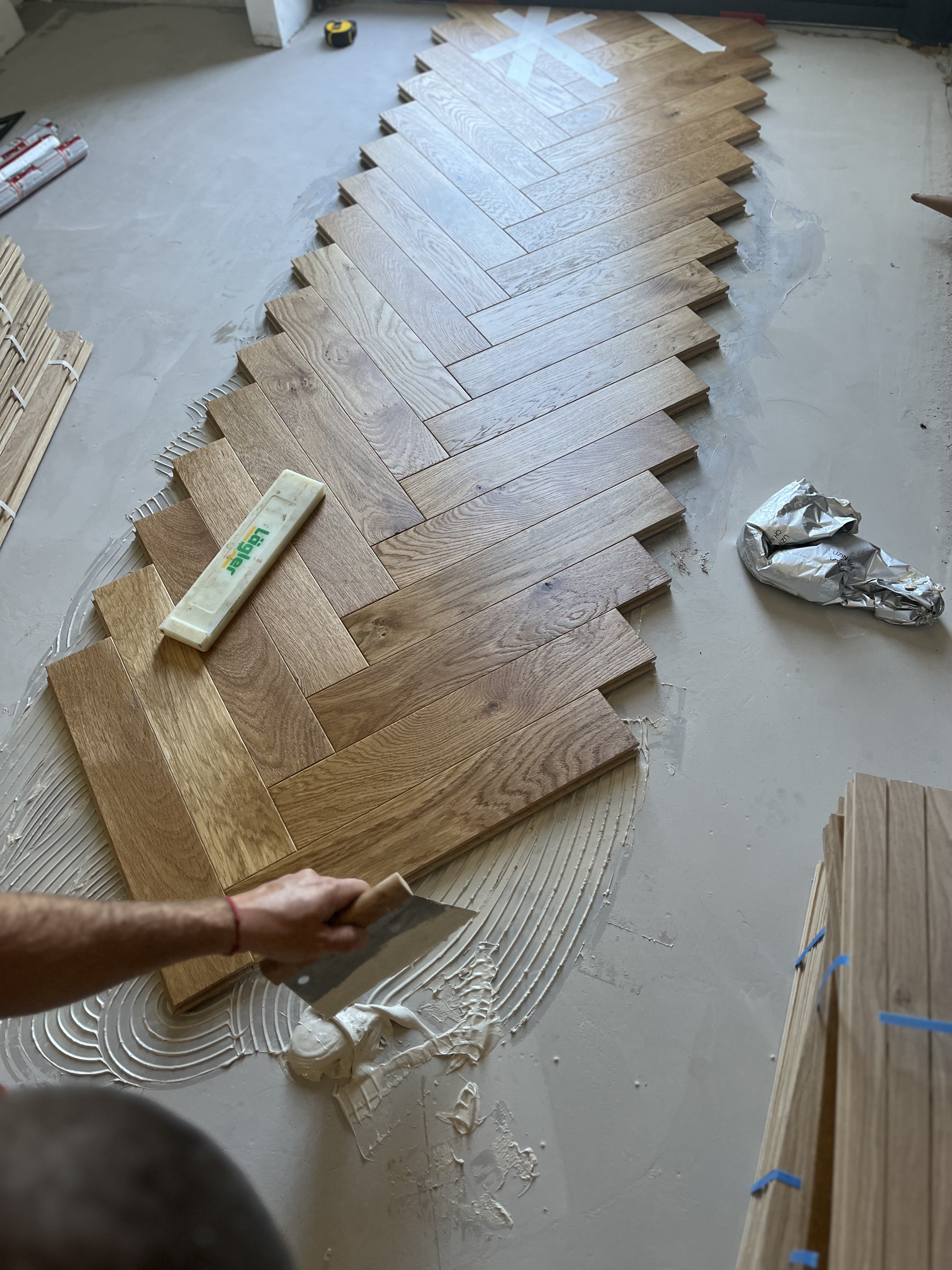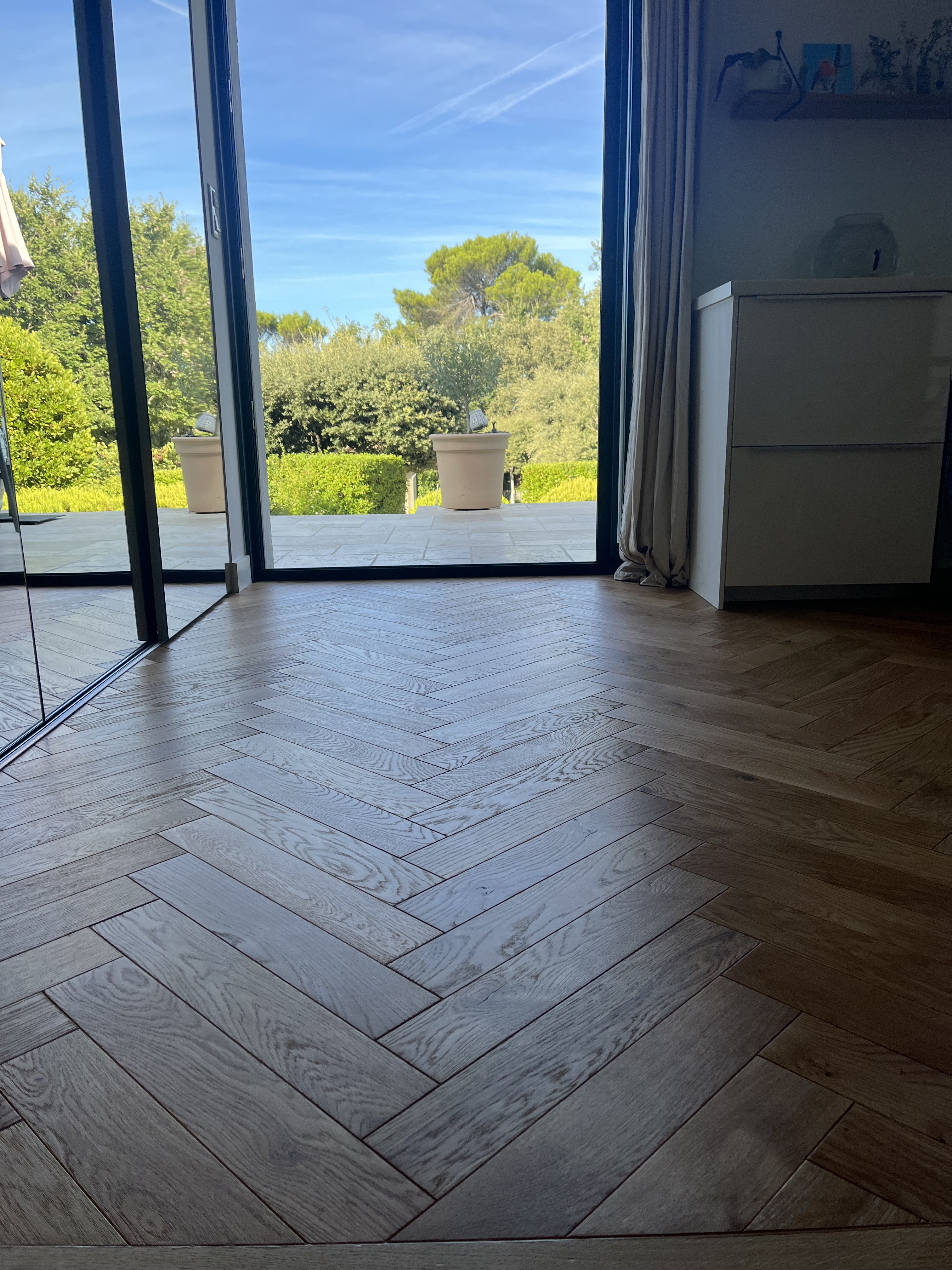 Pose de parquet en bâton rompu dans le Golfe de Saint-Tropez